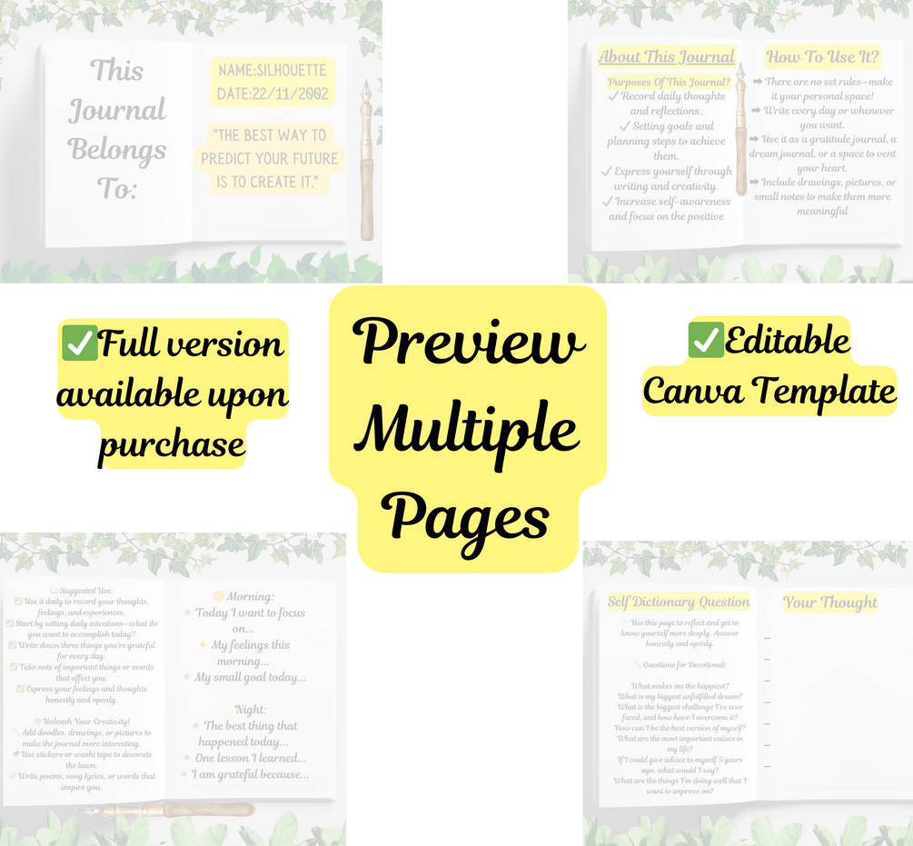 The journal is designed to help you record daily reflections, gratitude, dreams, and goals. With its minimalist design and inspiration, it's perfect for anyone who wants to write, reflect, and grow themselves!